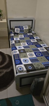يوجد عدد 2 سرير سنجل بغرفة ثلاثية في أبراج لؤلؤة عجمان كما يوجد بارتشن بنفس الشقة شامل انترنت وكل المرافق