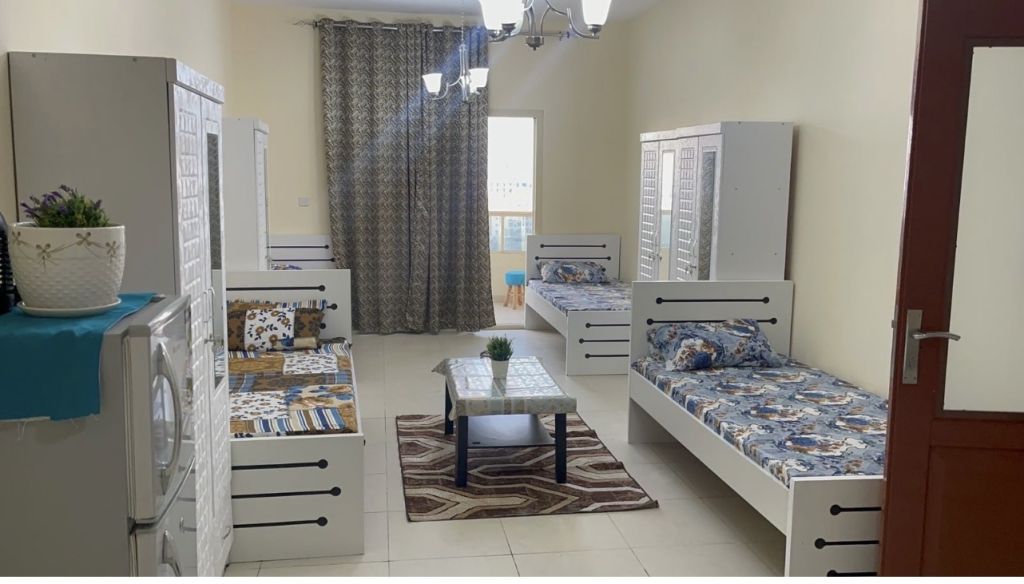 سكن بنات مشترك شامل مياه وكهرباء وانترنت وغاز البنات موظفات والسكن هادي ونظيف قريب من اللولو ونستو الجديد أم سيتي مارت وفيفا وتحت البناية محطة الباص والسكن قريب من كورنيش عجمان