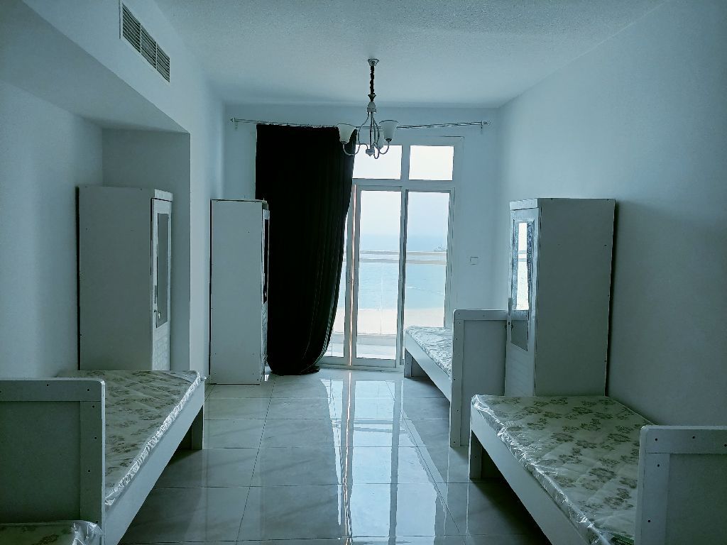 متاح سرير لشاب في غرفة رباعيه بلكونه في سكن شباب فقط في النخيل ع الكورنيش اطلالة بحرية سعر ب 650 درهم