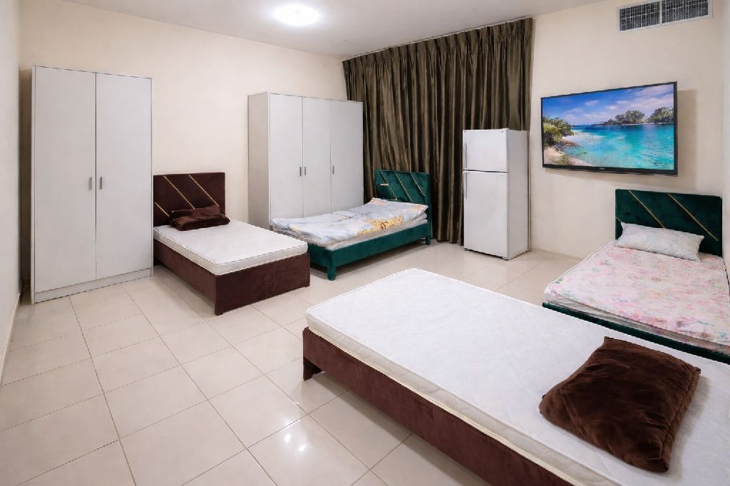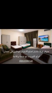 غرفة ماستر الشهر 2400 عجمان أبراج الأورينت مع ثلاجة وشاشة تصلح أربع شباب فقط موظفين