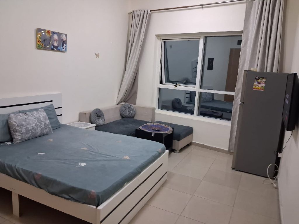 غرفة ماستر بحمام داخلي خاص مع شاشة تلفزيون وثلاجة بكورنيش عجمان النخيل 2 صف أول من الكورنيش اطلالة بحرية مباشرة سكن بنات وعائلات لزوجين أو بنت أو بنتين السعر 2500 درهم