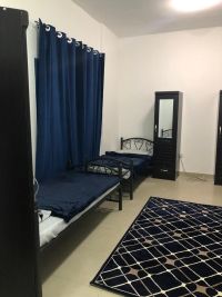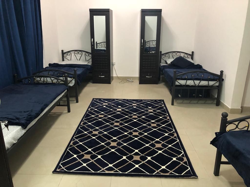 Beds available for AED650 in a master room in a quiet, organized, and clean male accommodation in Al Bustan area, next to the bus station and Lulu Center, and close to all services