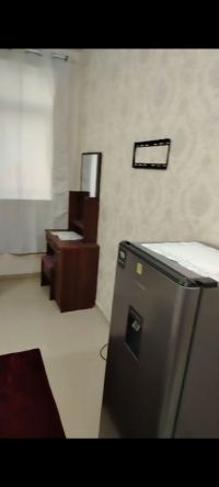 Master bedroom with a window, first occupancy, with TV, refrigerator, and private bathroom. Located on the Ajman Corniche, first row from the Corniche with a direct sea view. Suitable for families, couples, or one or two daughters. Price AED2300