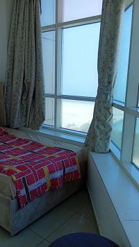 Available for monthly rent a large partitioned apartment in Ajman Corniche, Al Nakheel 2, first row from the Corniche with a direct sea view. Suitable for mixed - gender staff accommodation (couple, single, or single) Price AED1500 inclusive of all bills