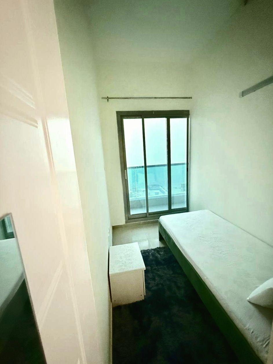 اطلالة بحر كاملة متاح بارتشن ببلكونه لبنت داخل غرفة ماستر 3 بارتشنات فقط، الحمام فقط لثلاث بنات دريسنج روم، شقة موظفين وهادية جدا، نظافة دروية. 1300 سعر نهائي