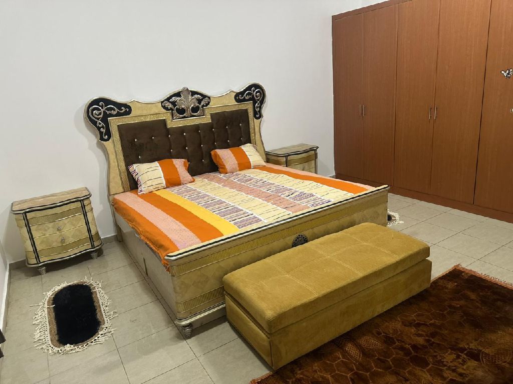 Master bedroom with private ensuite bathroom, first occupancy, in Ajman Corniche, Al Nakheel 2, second row from the Corniche. Suitable for families, couples, or one or two daughters. Price AED2500