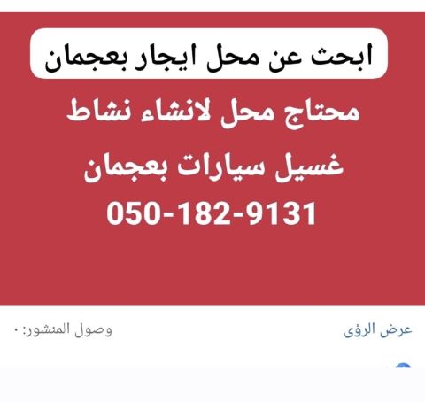 أنا أطلب محل يصلح أن يكون مغسلة سيارات غير مهم المساحة المطلوب أن يكون في عجمان أنا الزبون الذي أطلب استئجار المحل برجاء التواصل معي