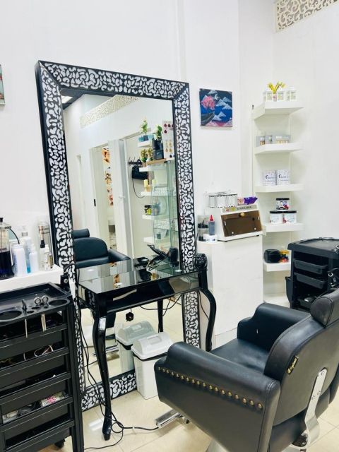 للبيع صالون نسائي عجمان الجرف مع المعدات كامل، على الشارع الرئيسي رخصة 2 كرسي منكير بدكير طاولة للاظافر حمام مغربي 4 كرسي للشعر غرفة واكس غرفة فيشل السعر 80000 ألف والإيجار السنوي 25000 درهم للتواصل بوعلي