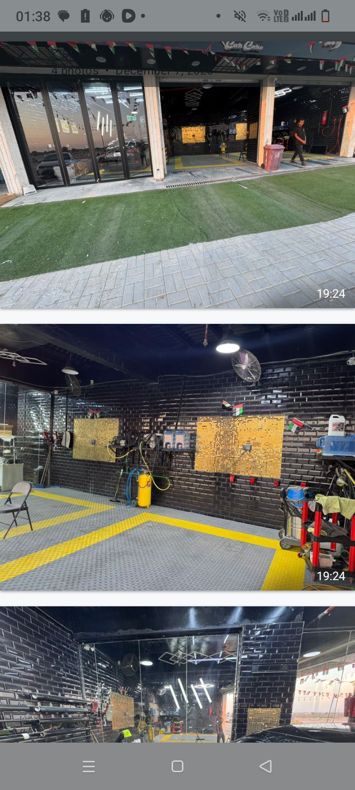 Car wash for sale in Ajman, Al Al Mwaihat. The car wash has 3 doors and offers various services washing, detailing, polishing, nano - ceramic coating, car accessories, and installation of car parts. It employs 3 workers. The annual rent is AED60000, payable in 6 installments. The asking price is AED125000