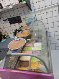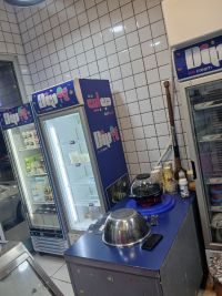 Ice cream shop for sale in Ajman, Al Al Nuaimia 3. Complete with brand new equipment including refrigerators, display freezers, a two - burner Arabic ice cream machine, a soft serve ice cream machine, a complete camera system with a monitor, a 50 - inch display screen, two waffle makers, a pancake and crepe maker, a large soundproof blender, an Italian electric orange juicer, three large stainless