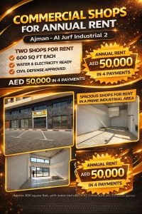Commercial Shop for Annual rent Ajman - Al Jerf Industrial Area 2 An excellent opportunity for business owners and investors A modern commercial shop in a prime Industrial location, suitable for all business activities. Property Details Approx. 600 SqFt Water & Electricity Connected Civil Defense Approved Modern finishing & practical layout Prime location with easy access Annual rent AED50000 Payable