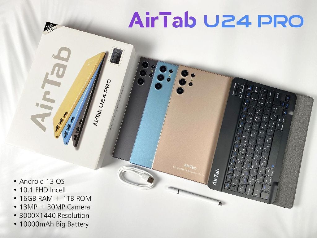 جهاز AirTab U24 Pro - نظام تشغيل اندرويد 13 - شاشة 10.1 بوصة FHD Incell - ذاكرة وصول عشوائي 16 جيجابايت + ذاكرة تخزين داخلية 1 تيرابايت - كاميرا 13 ميجا في كسل + 30 ميجا في كسل - شريحتان SIM تدعمان شبكات الجيل الخامس - دقة عرض 3000*1440 في كسل - بطارية كبيرة بسعة 10000 مللي أمبير - عبوة مغلقة باحكام - ضمان لمدة سنتين