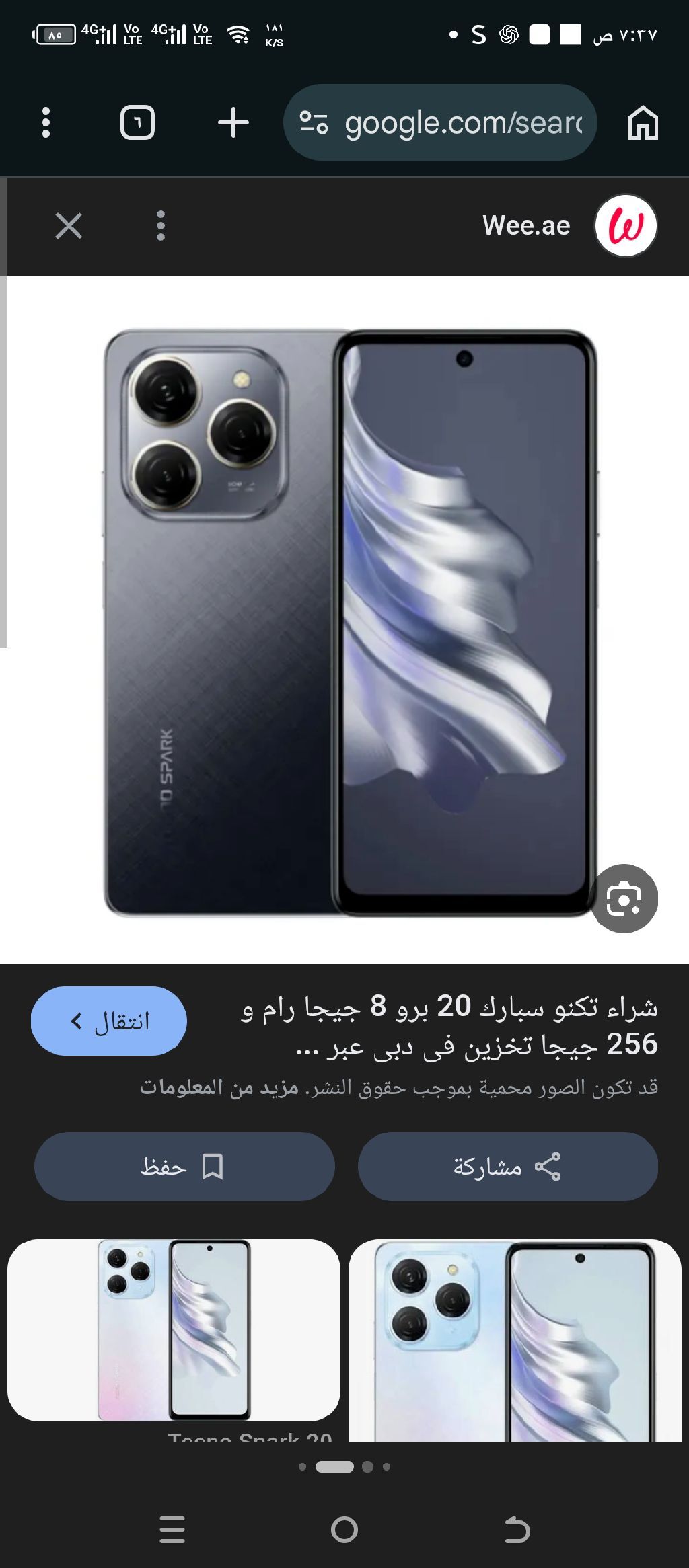 للبيع موبايل تكنو سبار 20 برو ذكره 256 رام 21 يعني ما صرلو معي خمس أشهر