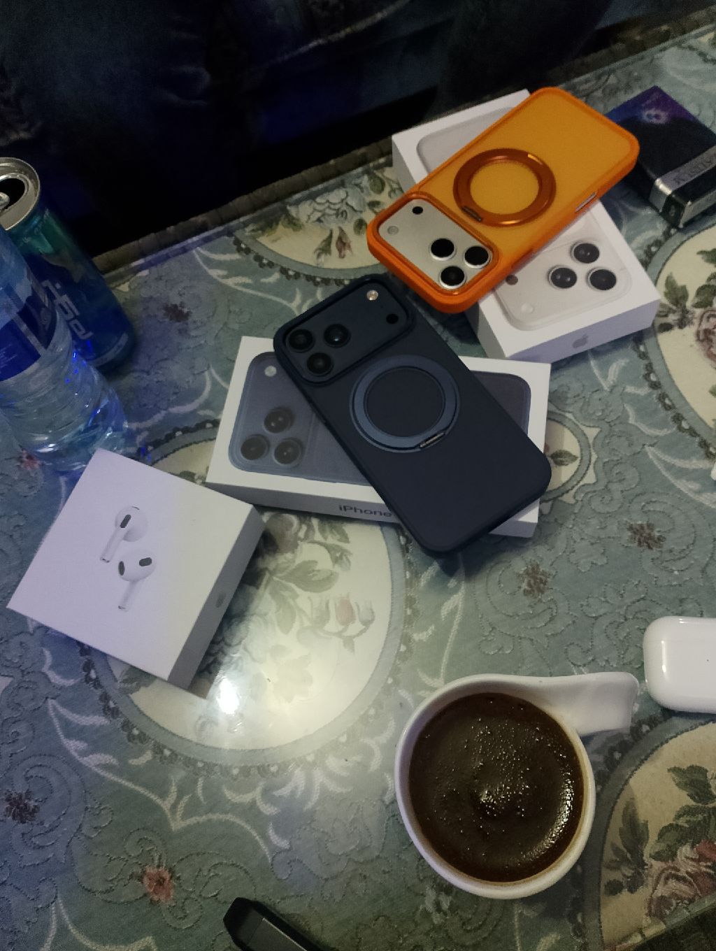آيفون 17 pro max النسخة الكوبي جديد بكل مشتملاته مستخدمته وش خالص كان جاي ب 450 ب الفاتورة هبيعه ب 350 اللون الكحلي ب الجراب والأسكرينه