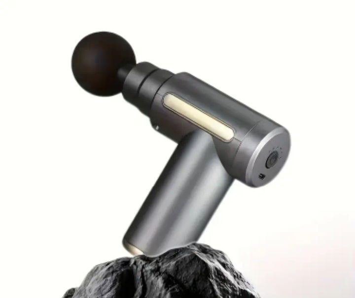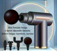 مسدس تدليك اللون الفضي سهل الحمل معاك في الشغل أو أي مكان 6 مستويات بطارية ليثيوم قابلة للشحن 4 رؤوس متغيرة شحن USB جميل ورائع شاشة تاتش لتشغيل والتنقل بين السرعات العدد محدود اللحق العرض