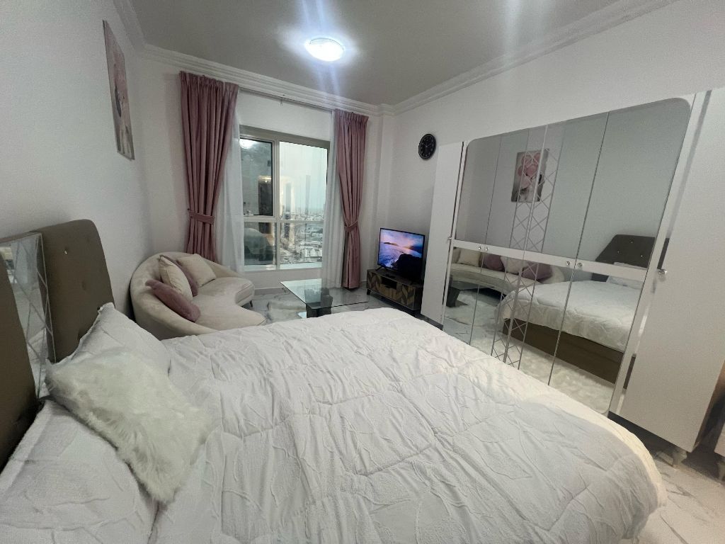 للإيجار في عجمان استوديو مفروش فرش فاخر في برج الواحة متوفر موقف سيارة مسبح وجيم السعر 3800 درهم للتواصل الامارات عجمان