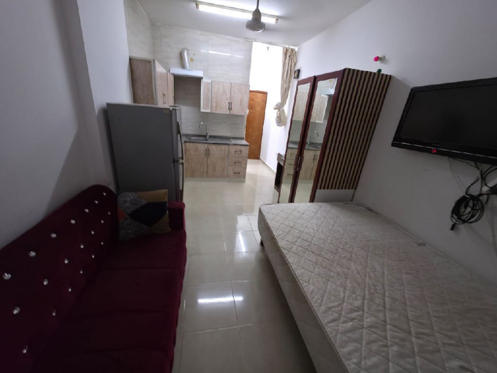 استوديو طابق أرضي للإيجار السنوي بدون انترنت مع الفرش 23 ألف على 6 دفعات بلكونه اطلالة ممتازة ومساحة كبيرة ثاني صف من كورنيش عجمان بجوار دوار السفينة