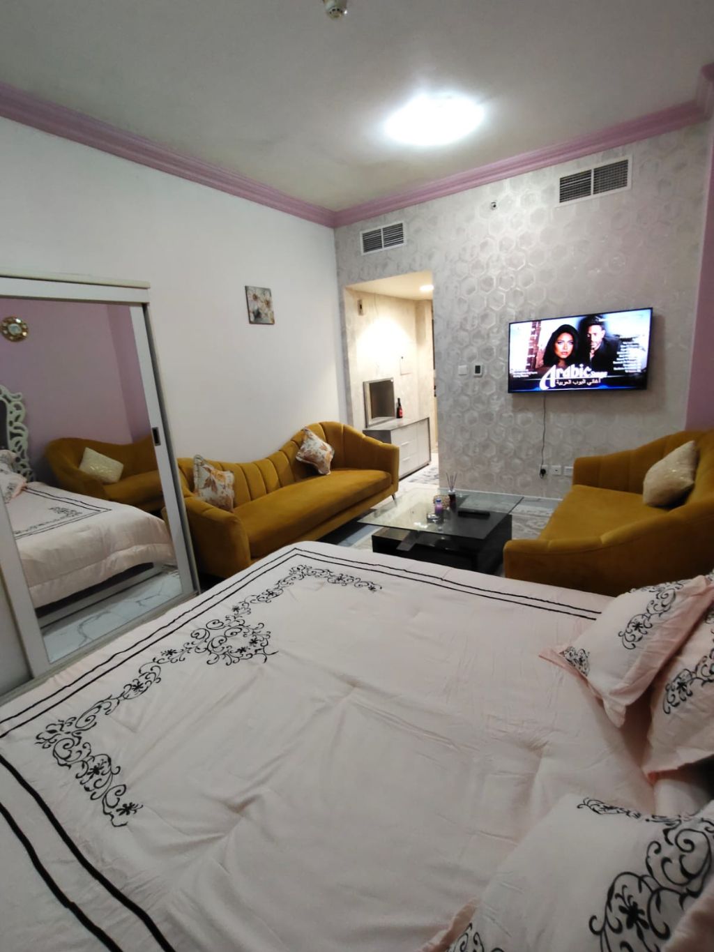 متوفر لدينا استوديو مفروش للإيجار الشهري في أبراج الواحة السعر شامل جميع الفواتير والانتر أنت مع موقف خاص + 500 تأمين مسترد عند الخروج