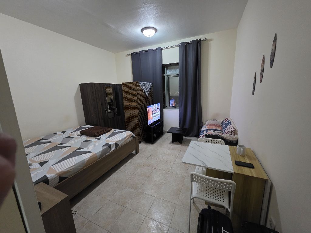 استوديو مفروش بمطبخ منفصل للإيجار في طريق الاتحاد، عجمان. يتميز الاستوديو باطلالة رائعة على الشارقة ودبي، ومتاح للإيجار ابتداء من 1 فبراير. الإيجار الشهري 3000 درهم بدون عمولة شامل جميع الفواتير. الموقع على مخرج الشارقة ودبي