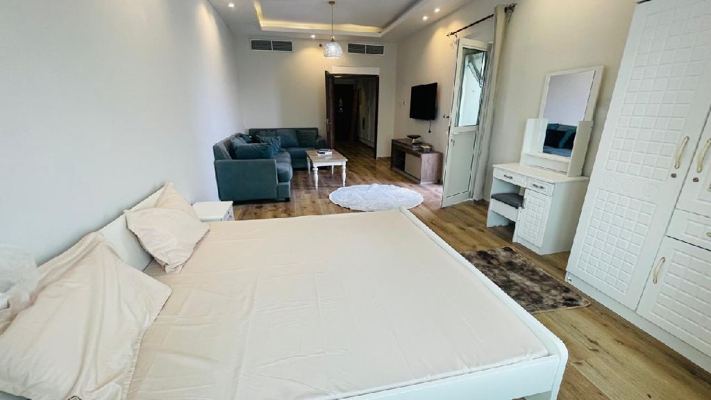 استوديو للإيجار مساحة واسعة فرش جديد تشطيبات جديدة اطلالة بحرية + بلكونه شباك المطبخ الحمام والمطبخ مشترك فقط مع بنتين موقع ممتاز أبراج الأورينت الإيجار 3000 درهم يفضل بنات أو رجل وزوجته