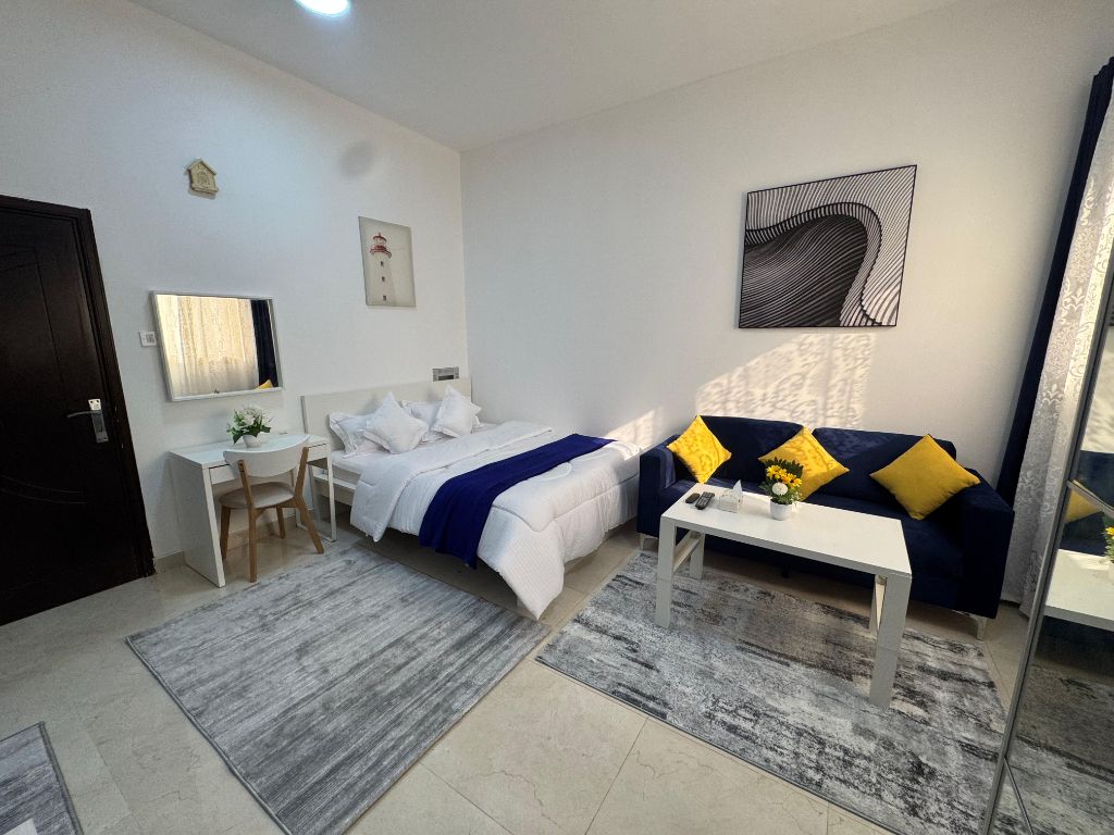 استوديو للإيجار الشهري، مفروشة بالكامل فرش VIP في عجمان المويهات الإيجار شامل الفواتير والانترنت وموقف سيارة موقع مميز وخدمات قريبة للسكن المريح موقع حيوي ومميز يضمن لك سهولة الوصول الى دبي والشارقة للتفاصيل اتصال