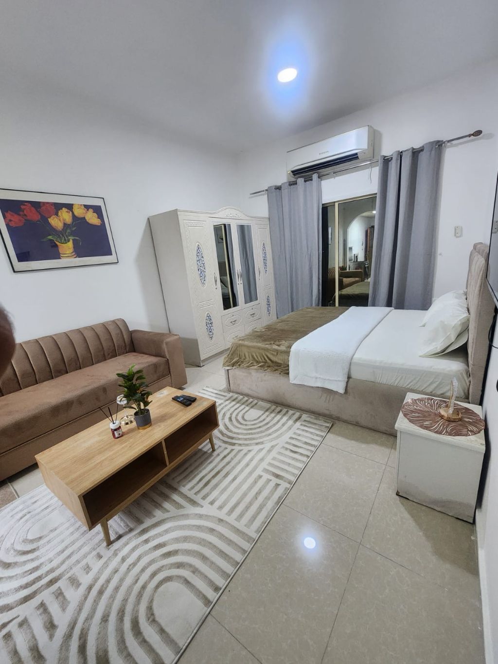 من أقوى لخصومات في إمارة عجمان استوديو مفروش في عجمان الروضة قريب من مخرج الشارقة ودبي استوديو بمساحة واسعة وبالكونة السعررر شامل الفواتير