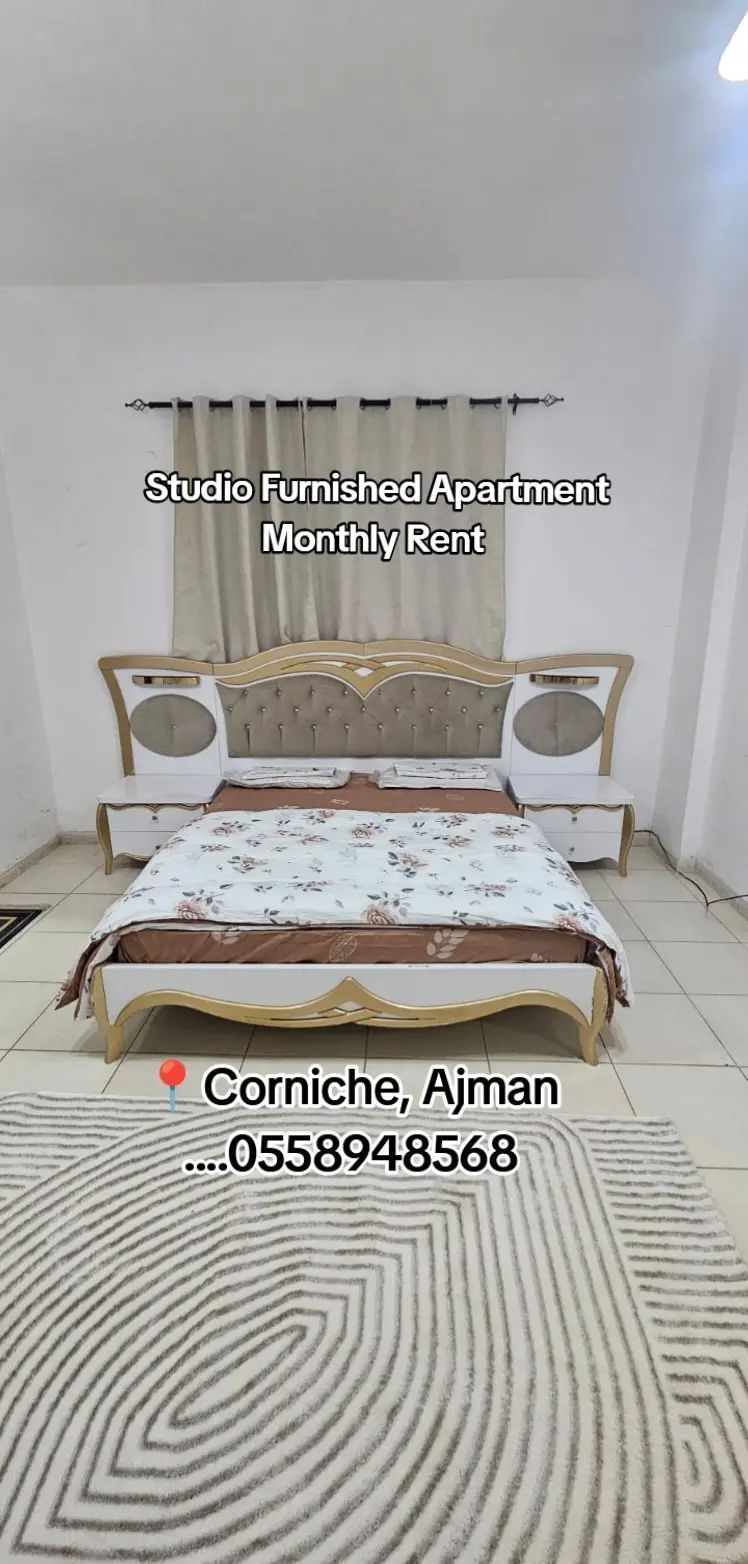Call or WhatsApp 01558948568 Al Baraka Building Studio - 204 Ajman Corniche - Separate Kitchen rent 2800 Deposit 500 + Commission