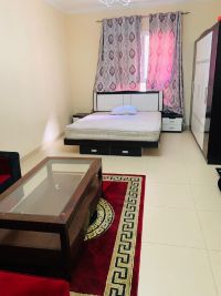 Furnished studio for monthly rent, Ajman, Al Jerf 2, spacious area, clean furniture, central air conditioning, studio equipped with all electrical appliances, a privileged location surrounded by all services, restaurants, cafes, malls, etc. and facilitated the exit to Dubai and Sharjah. Price 2500, including all bills, contact