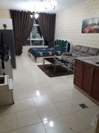 Furnished studio for annual rent Orient Towers, Ajman The price is 2900 dirhams, including all bills + internet The location is unique, close to all services, and easy to exit to Sharjah, Dubai