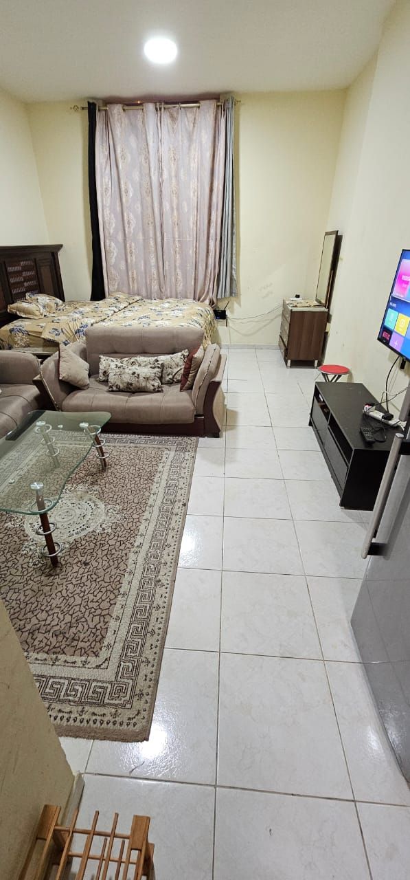 Al Al Nuaimia 1, close to Al Hikma School and Gulf Bridge, furnished studio, separate kitchen, large area, price 2500 dirhams, including bill, electricity, water, sewage, and internet, all services available, excellent location, easy exit to Dubai