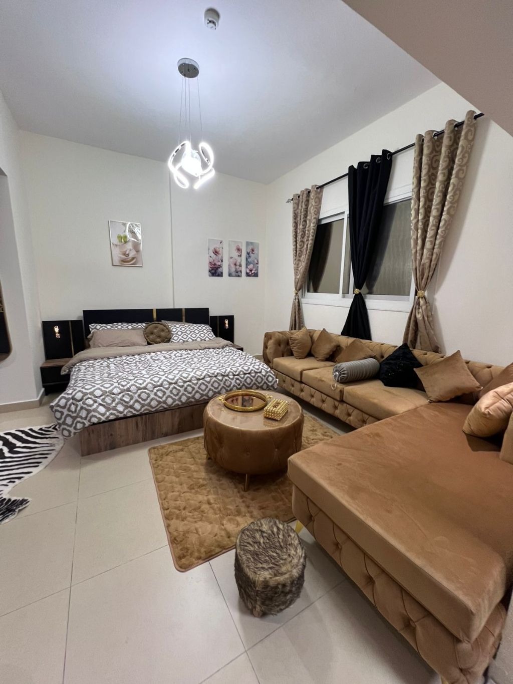 For rent in Ajman, a fully furnished VIP studio, first tenant in Al Yasmeen Towers. monthly rent includes refrigerator, internet, parking, and a separate kitchen. Price 3800, including parking. Deposit AED1000. Available and ready to move in. Contact