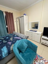 For monthly rent in Al - Basmeen Towers opposite Ajman City Center, a large studio with a separate kitchen. The price is 3000, including all bills, with parking. New, elegant, and tidy furniture