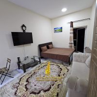 With a balcony with a sea view, a furnished studio for monthly rent in Ajman Corniche, including bills and internet. The location is near the ship roundabout and Barin Hotel. A very clean building designated for family housing. The price is 3000, including bills, internet, and free parking next to the building