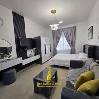 Furnished studio for monthly rent in Ajman - Newly furnished, first occupant. fully furnished studio with VIP furniture and a modern kitchen equipped with home appliances. Location Ajman - Al Jerf 2 - near Al Aqsa School. rent 3500, including bills (electricity, water, sewage, internet) easy access to Dubai and Sharjah