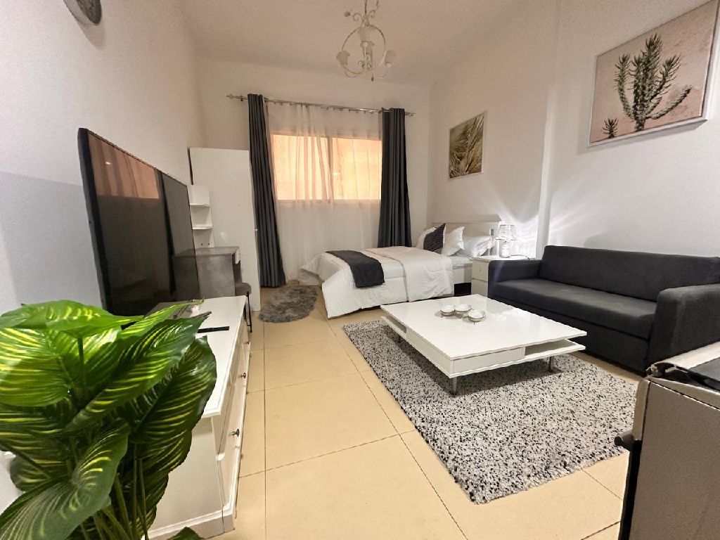 First tenant furnished studio for monthly rent in Ajman, Jasmine Towers, Al Jerf 2 area, opposite Ajman City Center, completely new furniture, very large area, including all bills and parking