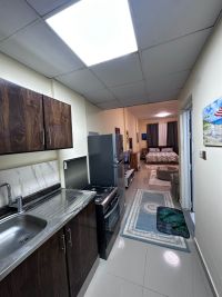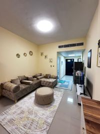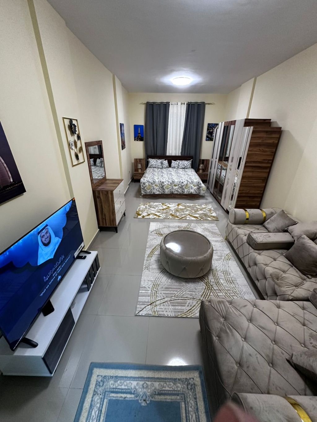 Studio in Al Jerf, all bills included. First tenant, central air conditioning. Close to Ajman Traffic Department. Including electricity, water, sewage, and internet. Price 3600 dirhams