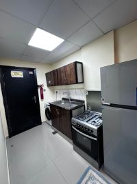 Monthly rent in Ajman, Al Jerf 2 area, close to the court, communications and the group, a furnished studio with new furniture, first residence, large area, separate kitchen, price 3500 including bills, electricity, water, sewage and internet, all services are available, excellent location, easy exit Mohammed Bin Zayed City, Dubai and Sharjah