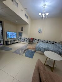 For rent in Ajman, a spacious studio with new furniture. VIP furnished studio, first tenant in Al Yasmeen Towers. monthly rent includes bills, internet, free parking, and a separate kitchen. Price 3200 including parking