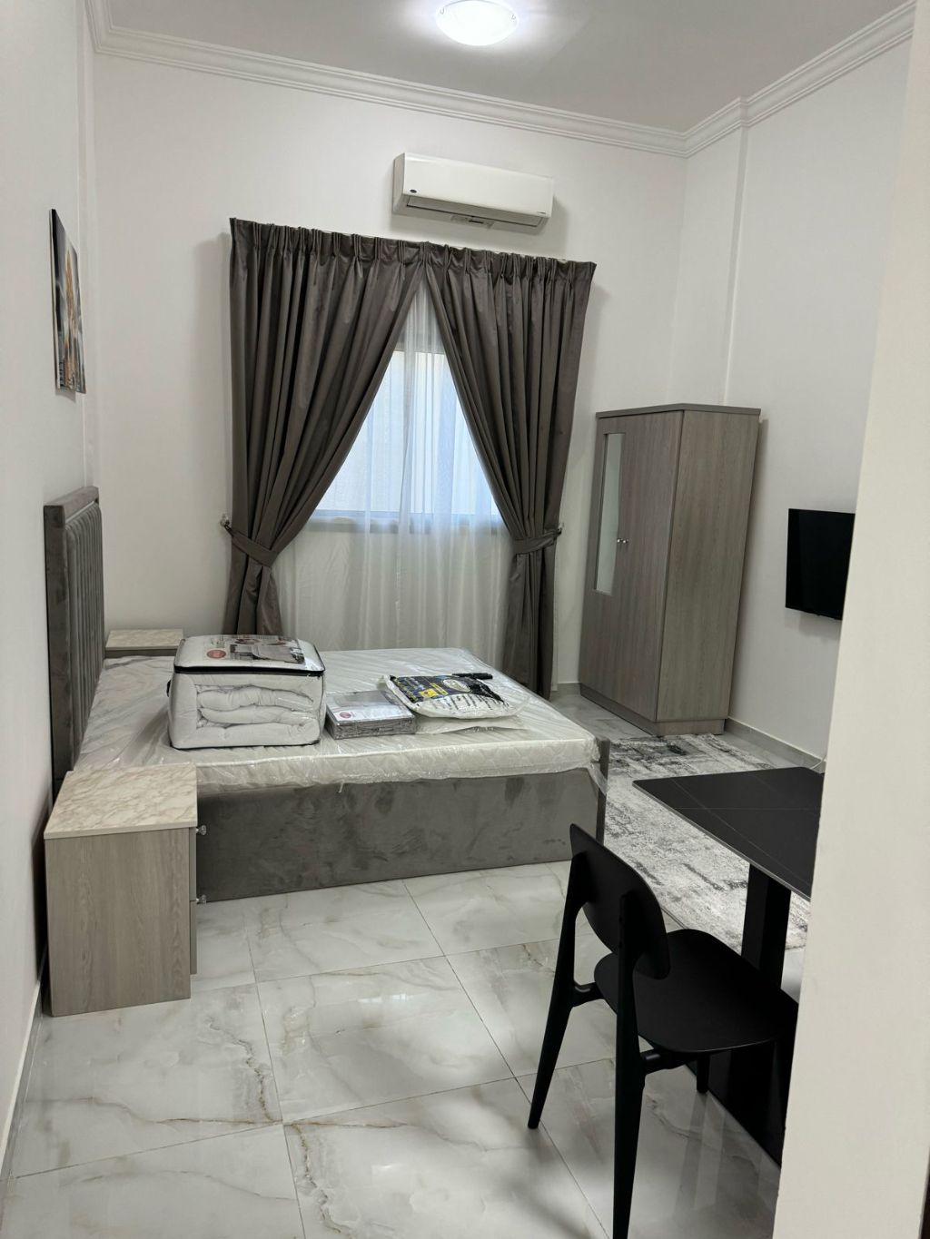 Fully furnished studio for monthly rent in Ajman Al Rawda 3 on Alexandria Street, elegantly furnished with a semi - detached kitchen fully equipped with appliances and equipment, and a separate bathroom, including bills (electricity, water, sewage, internet) for only 2800 dirhams, in a strategic and vital location surrounded by services and central markets