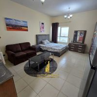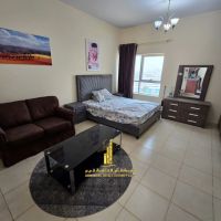 Fully furnished studio for monthly rent at AED2900 inclusive of electricity, water and internet, in Orient Towers - Rashidiya 1, with an open view in a vital location next to the fish market and Middle East Mall, with access to a gym and a swimming pool within the building - the ideal choice for comfort and integrated services