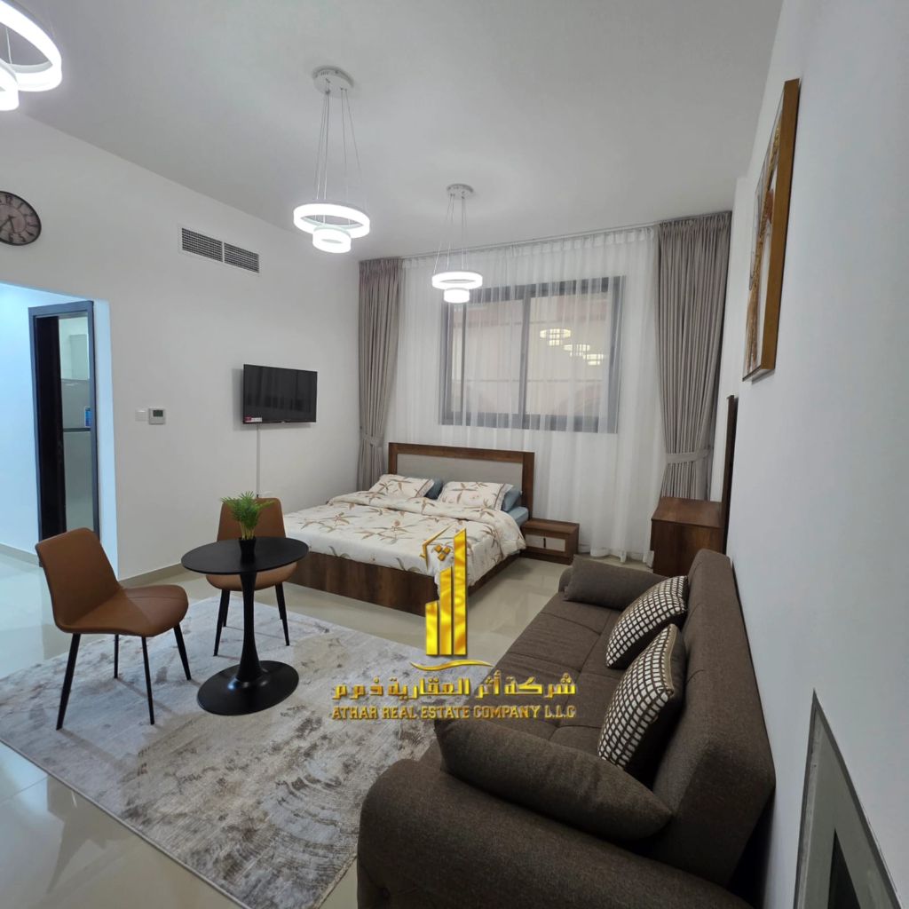 First resident, fully furnished studio for monthly rent in Ajman, Al Al Nuaimia 1 area - rent 3500 including bills and internet, new building, first resident, vital location next to all services and easy exit to Dubai and Sharjah