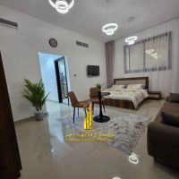 Newly furnished, first tenant, fully furnished studio with separate kitchen for monthly rent in Ajman, Al Al Nuaimia 1 area, rent 3500 dirhams including bills and internet, on Kuwait Street, strategic and vital location next to all services and easy access to Dubai and Sharjah