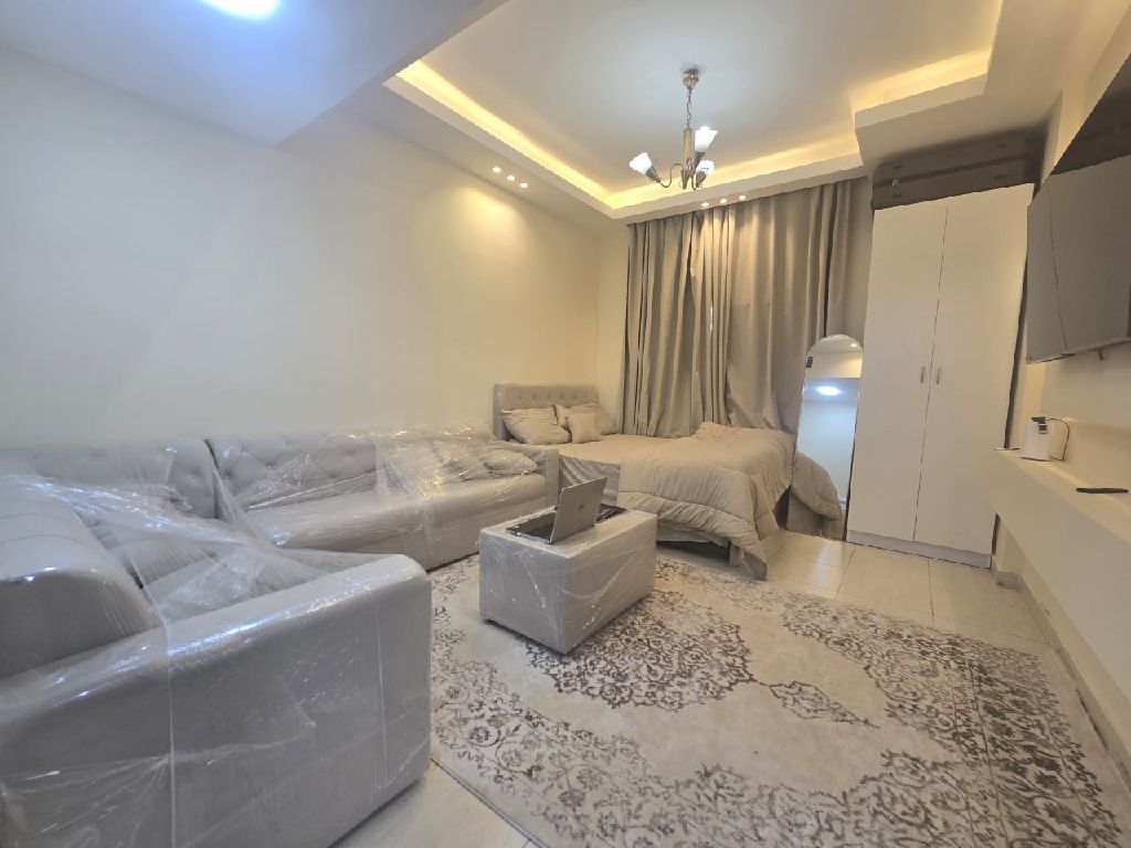Furnished studio for rent in Ajman Al Yasmeen Amira Village First resident Fully new furniture Separate kitchen Shaded parking All bills and internet included