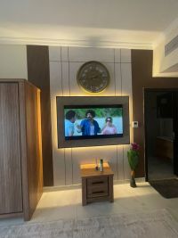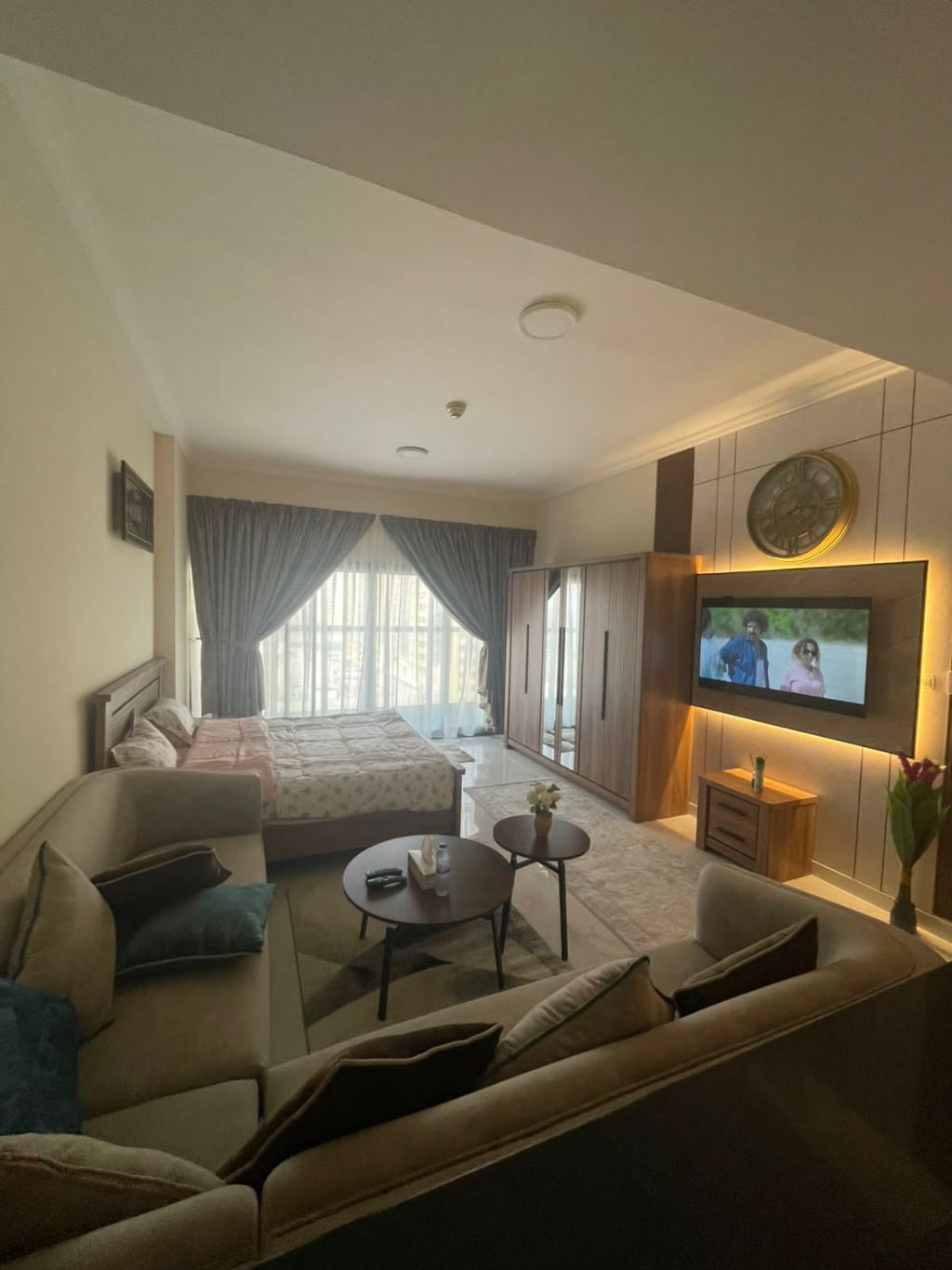 First Residence Furnished studio for monthly rent in Ajman easy access to Dubai and Sharjah American kitchen Al Jerf 3 With balcony, gym, and swimming pool Close to Ajman University and Khalifa Hospital Opposite Ajman Court Distinctive spaces New furniture Including bills, internet, water, electricity, and sewage No Indians allowed
