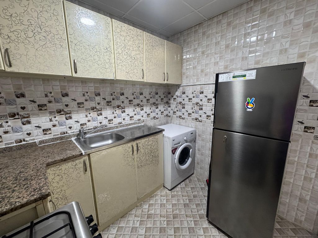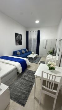 Furnished studio for monthly rent in Ajman Al - Moyahat 2 Near me, all services and easy access to Dubai and Sharjah A large space with a separate kitchen and a balcony with an open view Clean carpet, separate first resident And the price includes all bills and the corner of the building 3400 dirhams 500 refund when leaving