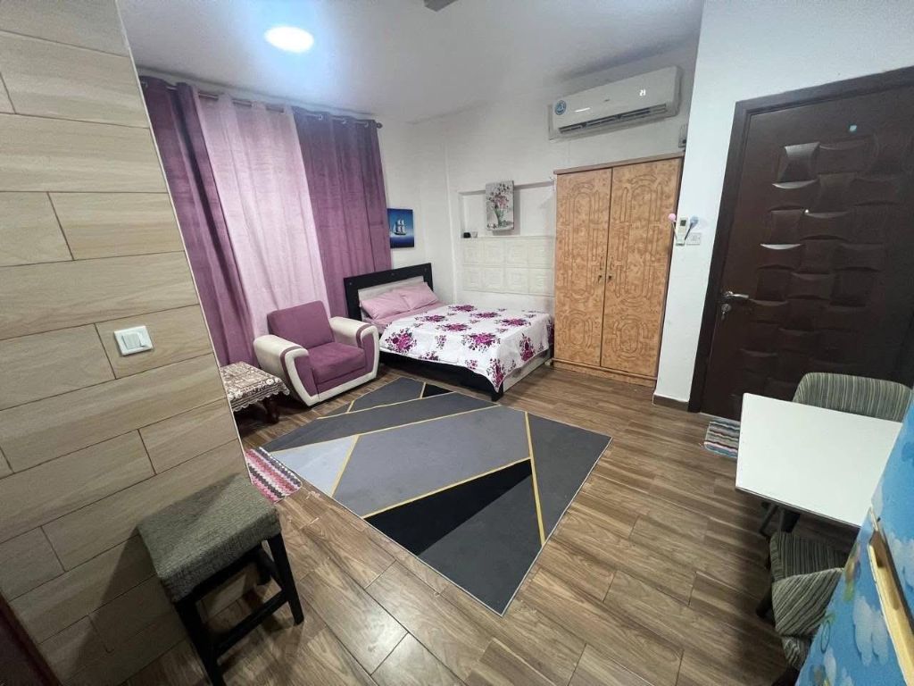 Furnished studio apartment for monthly rent in Ajman Al Al Nuaimia, Kuwait Street easy access to Dubai and Sharjah Close to all services Near a bus station Near Safeer Mall Includes bills, internet, water, electricity, and sewage Available now For inquiries and contact, please call