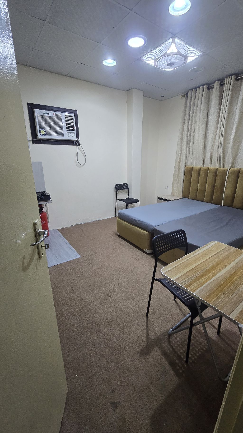 Here is the translation A room is available within a furnished apartment with a kitchen in Ajman, Al Bustan, suitable for a small family or a single man, preferably from the Levant. Electricity and water are included. The other room is closed and not used, so the place is almost entirely yours most of the time