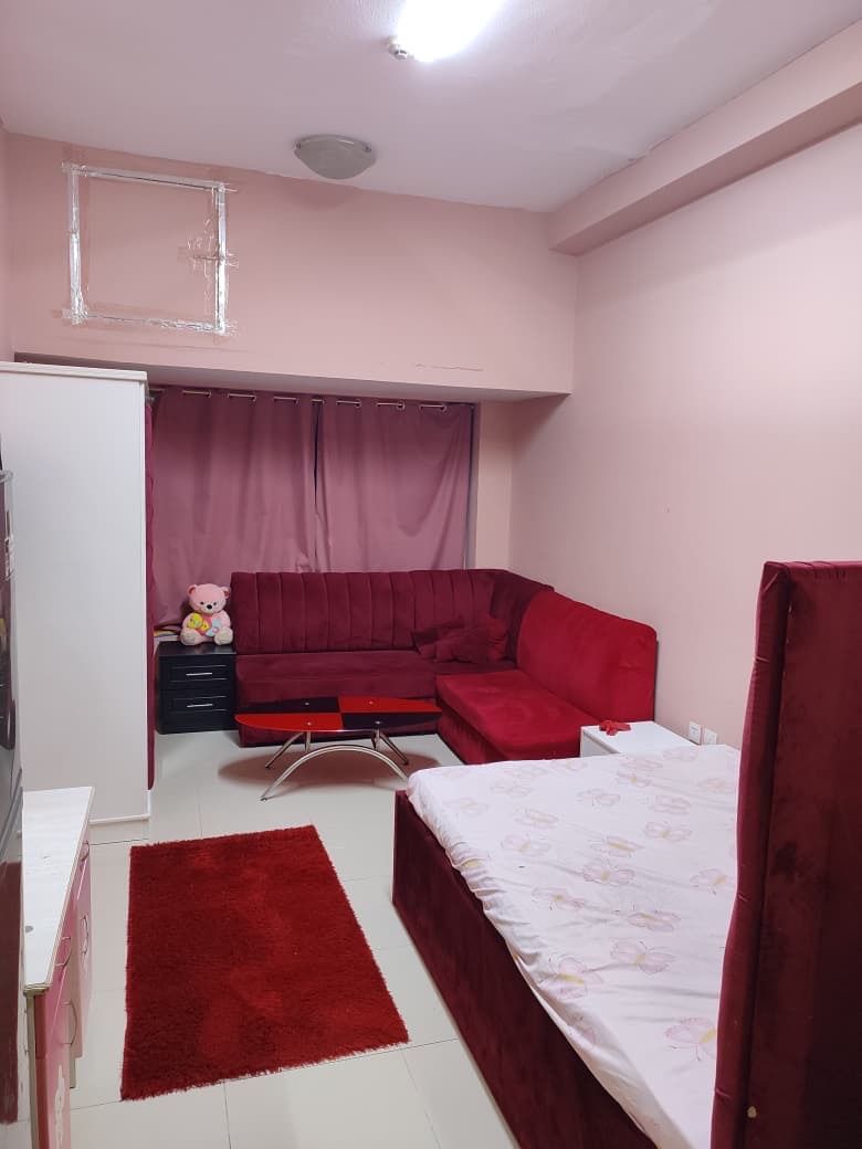 Furnished studio apartment for monthly rent, AED2700, in Rashidiya Pearl Towers 1, Ajman. Clean studio in an excellent location in the city center, close to the Ajman entrance and exit to Sharjah and Dubai