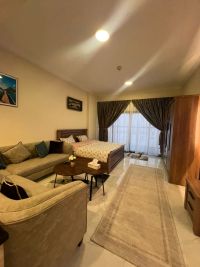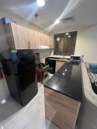 استوديو مفروش للإيجار الشهري في عجمان الجرف 2 مطبخ أمريكي مع بلكونه جيم ومسبح داخل البناية قريب من جامعة عجمان مقابل محكمة عجمان مساحات مميزة + فرش