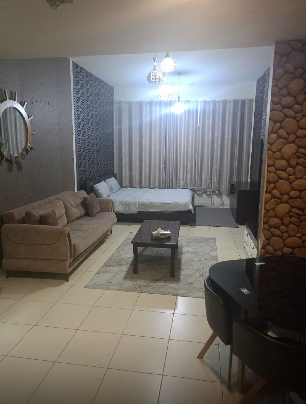 Studio apartment for monthly rent in Ajman. Available now. AED3500 rent, AED500 security deposit